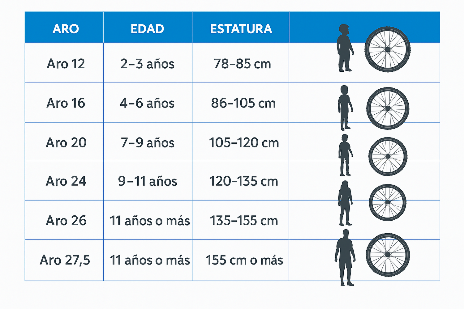 En los aros 12 al 26 simplemente es por estatura, dentro de cada producto puedes encontrar esté detalle.